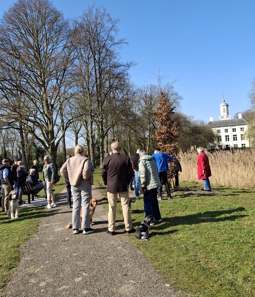 Verstilde bomen blikken tijdens ochtend ommetje.
