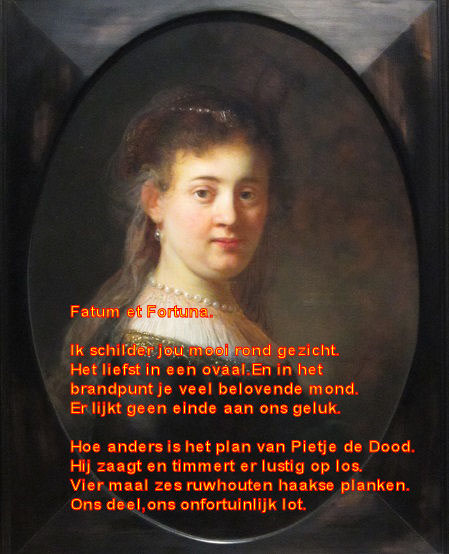 Bij Portret van een vrouw (1633),vermoedelijk Rembrandts vrouw Saskia van Uylenburgh (1612-1642), ook genoemd Jonge vrouw in gefantaseerde kleding.